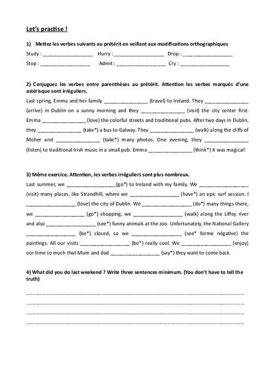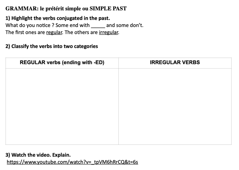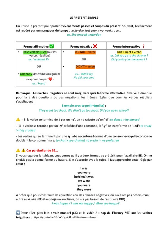 GRAMMAR : le prétérit ou SIMPLE PAST